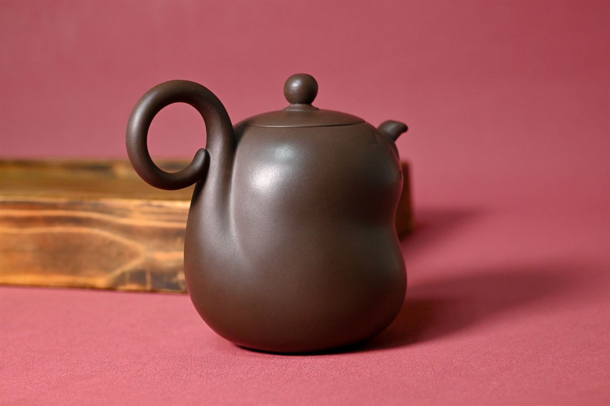 壶身的整体线条流畅,如灵蛇的蜿蜒律动感。壶身象葫芦形,葫芦在中国文化中象征着福禄,长寿和繁荣。饱满的壶身,静待容纳千流,涵养天地茶饮,流露着智慧与包容。 The overall lines of the pot body are smooth, like the meandering rhythm of a spiritual snake. The contour of the pot is shaped like a gourd. The gourd symbolizes fortune, longevity and prosperity in Chinese culture. The full body of the pot is waiting quietly to accommodate thousands of flows, nourishing the tea of heaven and earth, revealing wisdom and tolerance.